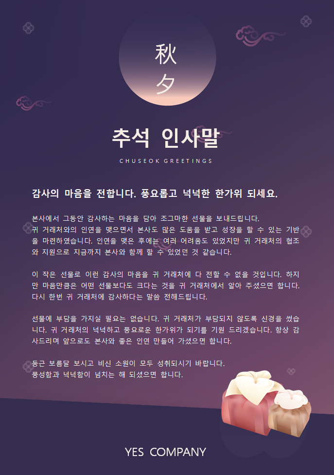 추석 한가위 연휴 휴무 안내문 축사 인사말 서식 및 예문 양식 업데이트! 예스폼에서 미리 준비
