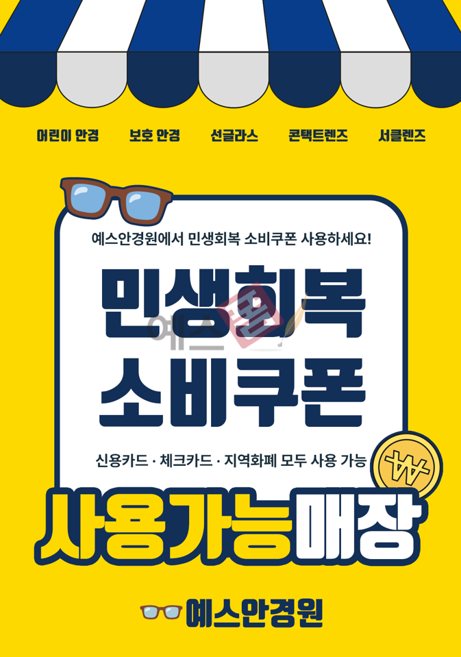 업종별 맞춤 전문 안내문 : 안경원 및 관련 업종에서 사용할 수 있는 전문 안내문으로, 업종별 특성을 반영한 맞춤형 문구와 레이아웃을 제공합니다. 소비자가 신용카드나 체크카드 및 지역화폐 등으로 소비쿠폰을 활용해 결제할 수 있음을 직관적으로 전달할 수 있습니다. 오프라인 매장에 인쇄하여 부착하거나 디지털 홍보물로도 활용 가능하도록 제작되었으며, 각 업종의 특성에 맞는 전문적인 용어와 설명을 포함하여 고객들에게 더욱 신뢰감을 줄 수 있도록 설계되었습니다.