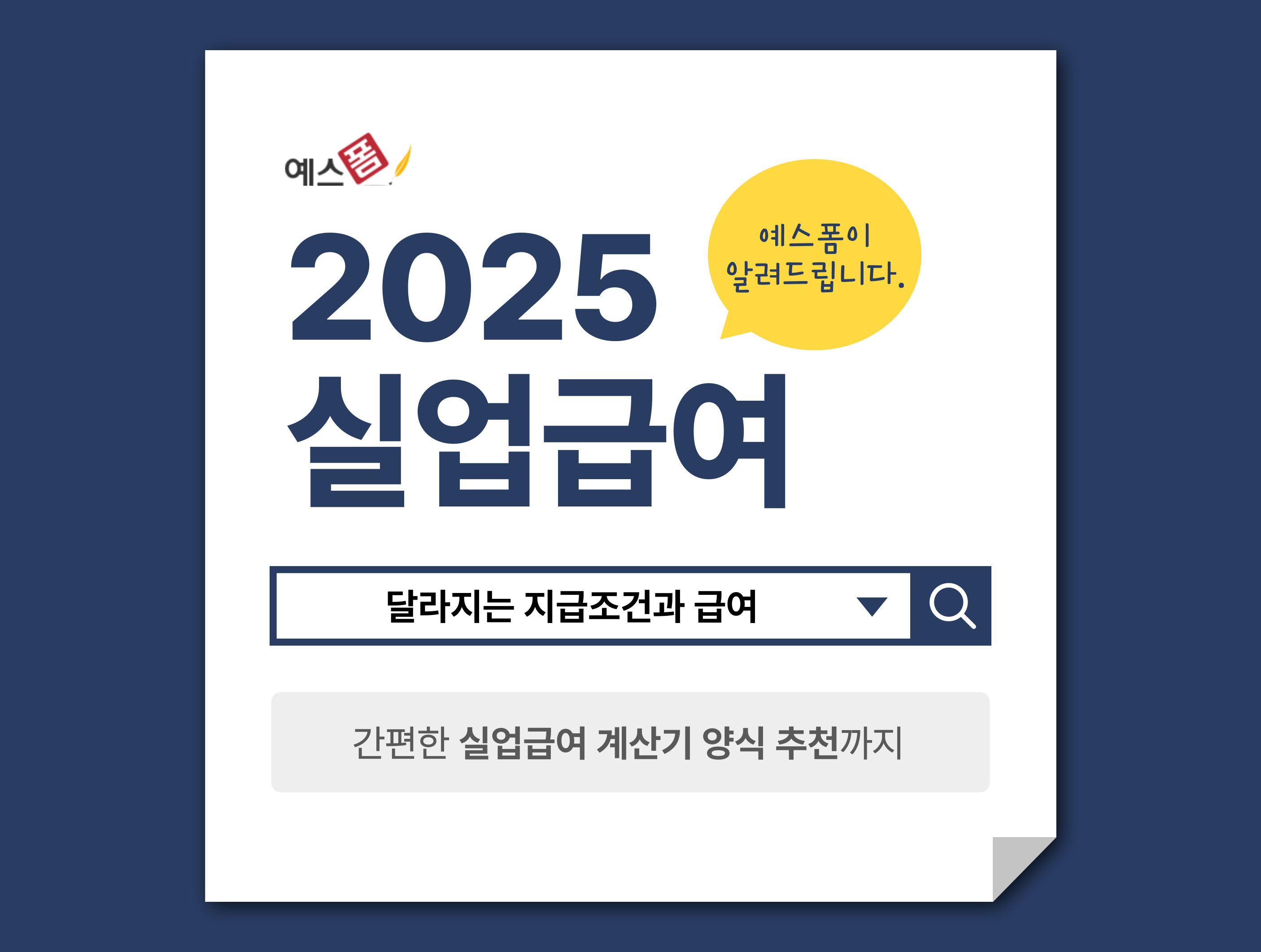 실업급여는 실직 후 생계유지를 위한 중요한 지원책인데요. 2025년부터 새롭게 시행되는 조건이 생기는 만큼, 이를 잘 이해하고 준비하는 것이 필요합니다. 새롭게 시행되는 정책과 추가 보험료 부과 정책을 숙지하여, 실업급여를 효과적으로 활용해 보시길 바랍니다. 예스폼의 실업급여 계산기를 이용한다면 예상 수령액을 간편하게 확인하실 수 있을 것입니다.