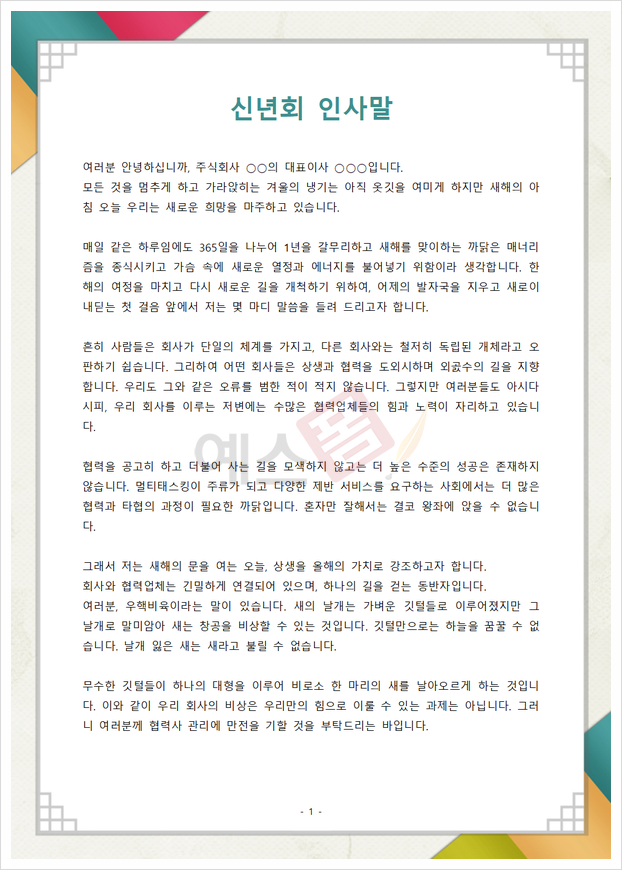 📌 예스폼 [신년사] 회사 대표 새해 인사말 (열정, 상생) (2025년)