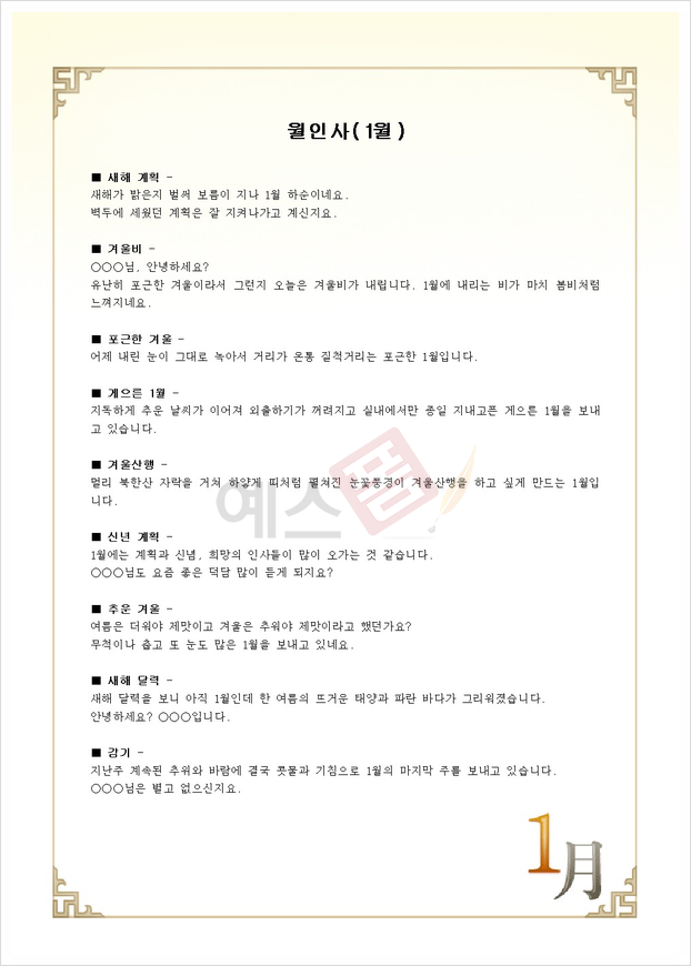 📌 예스폼 (인사말) 1월 계절 인사(30개 예문 모음) (2025년)