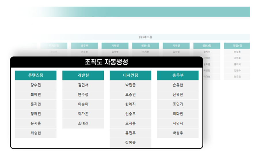 | 조직도 | 사내 조직도 자동생성 |