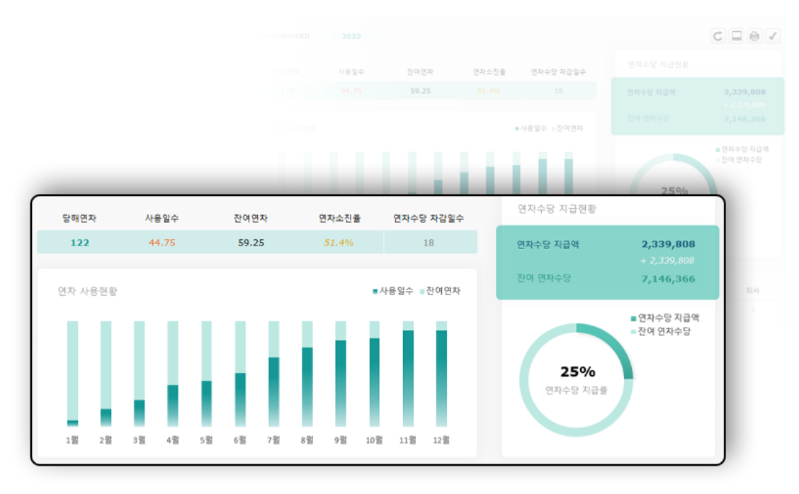 연간 연차 현황이 대시보드 차트로 표시됩니다.