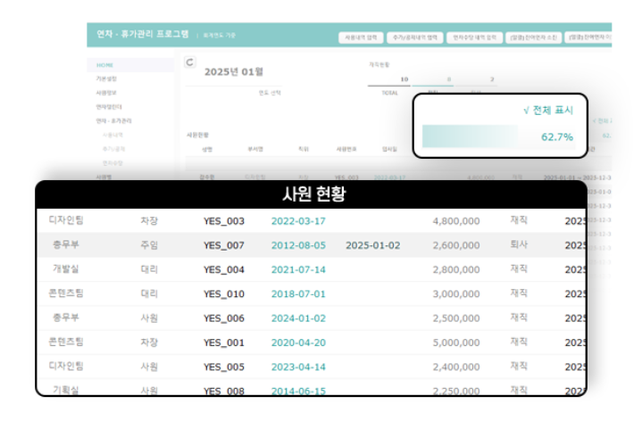 전체 사원의 연간 연차현황을 한눈에 확인할 수 있습니다.