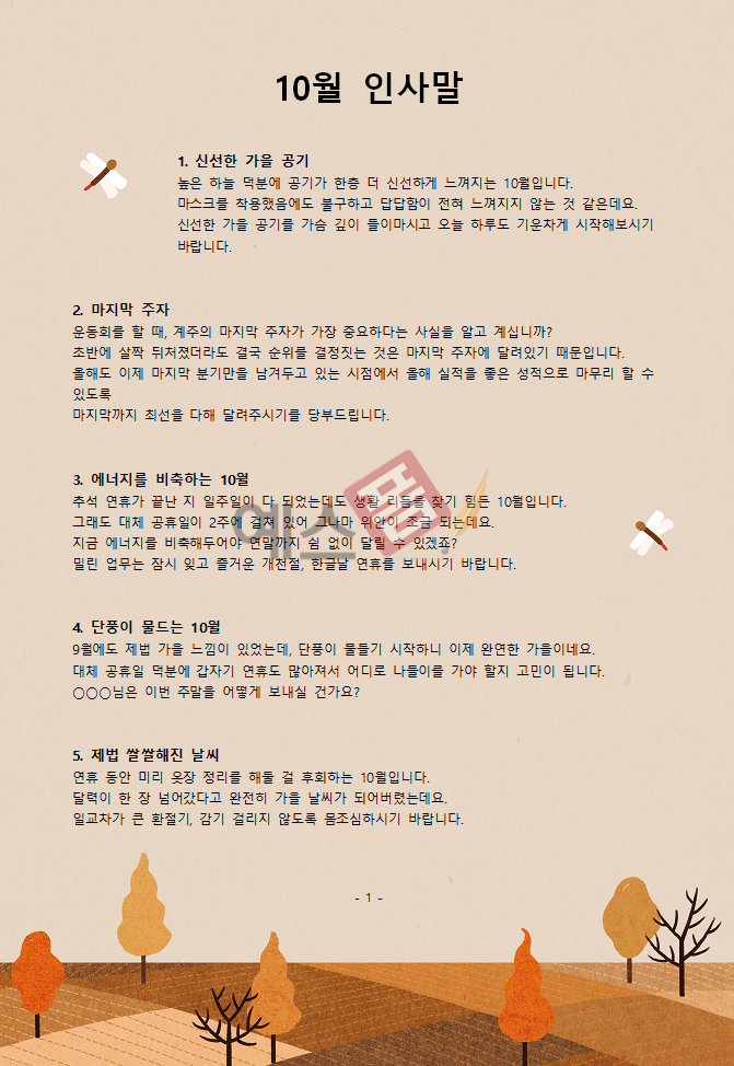 (인사말) 10월 인사말(10개 예문모음)