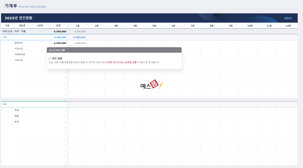 간편형 가계부_Personal Yearly Budget - 예스폼 엑셀서식