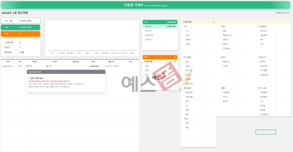 🏆 가계부 엑셀 양식 소개 (예스폼 BEST 5)