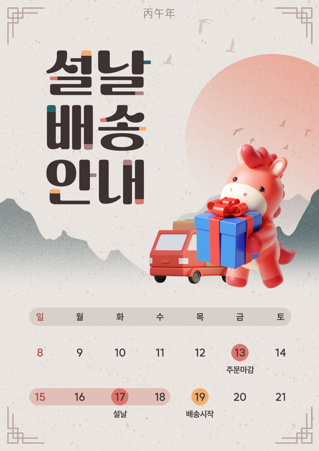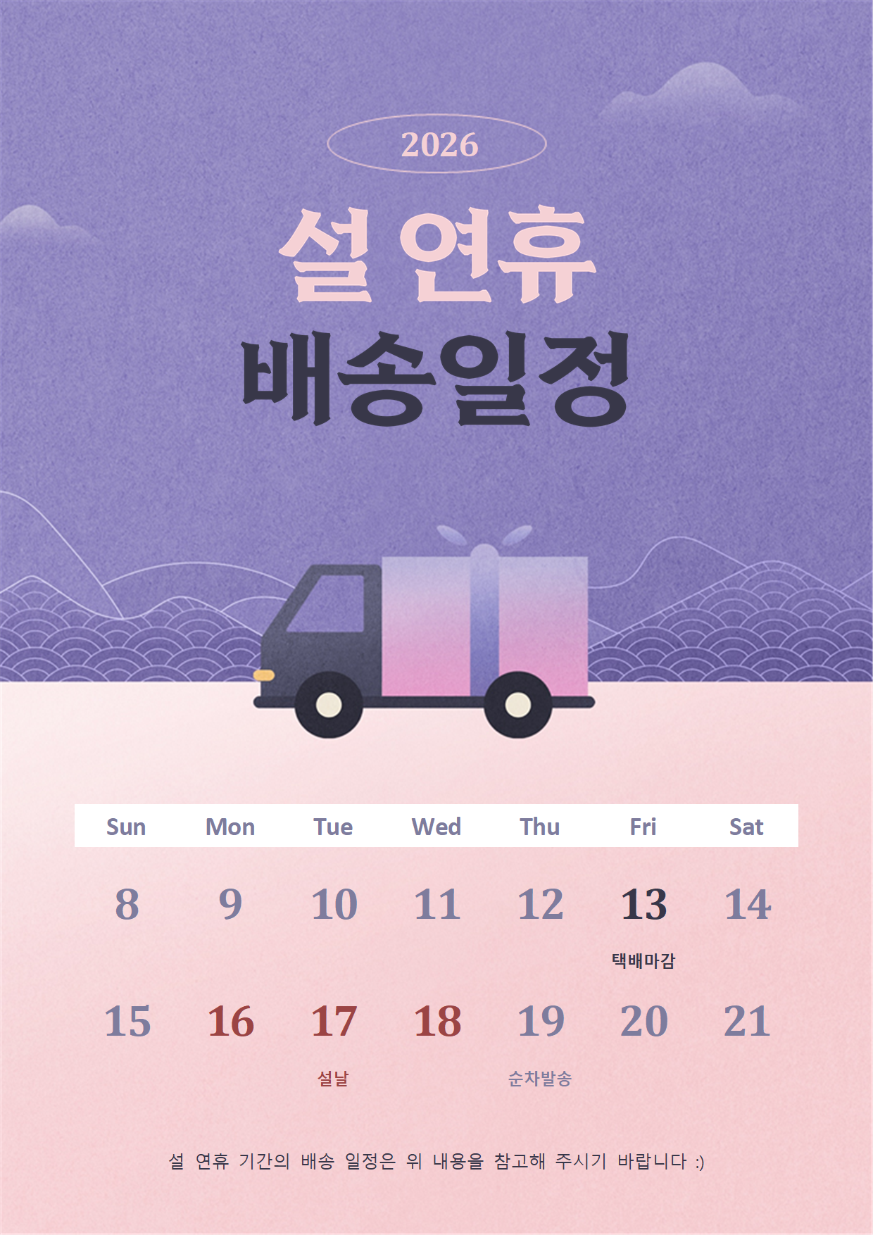 📦 2026년 설날 택배 배송 안내문 – 배송 일정을 명확하게 공지하세요