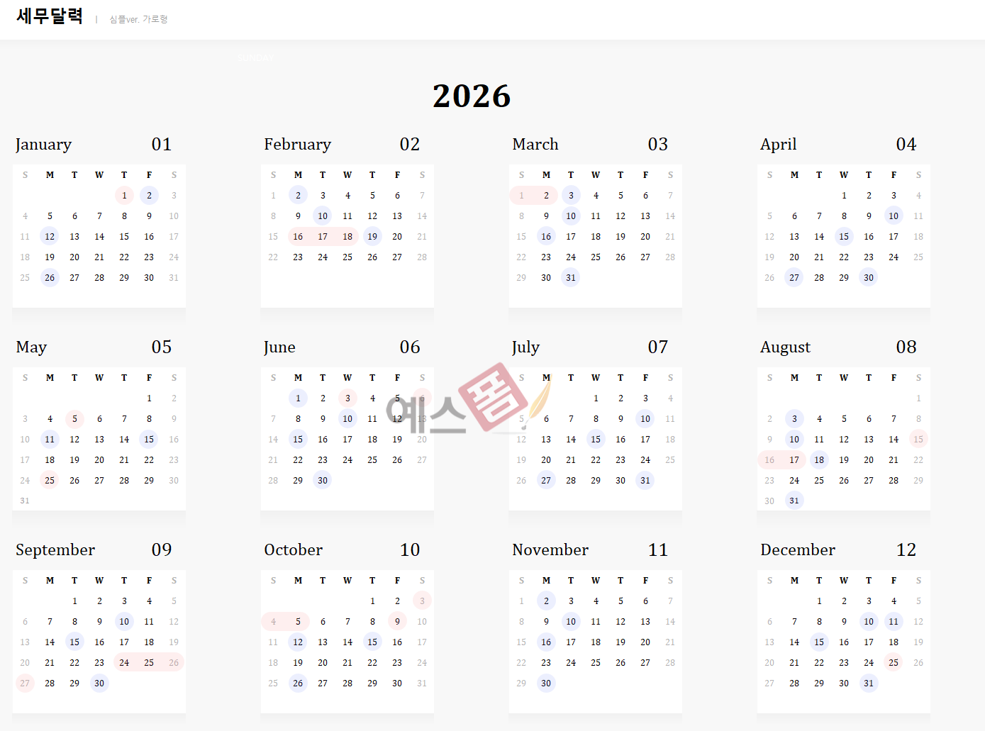💼 2026년 세무달력 가로형