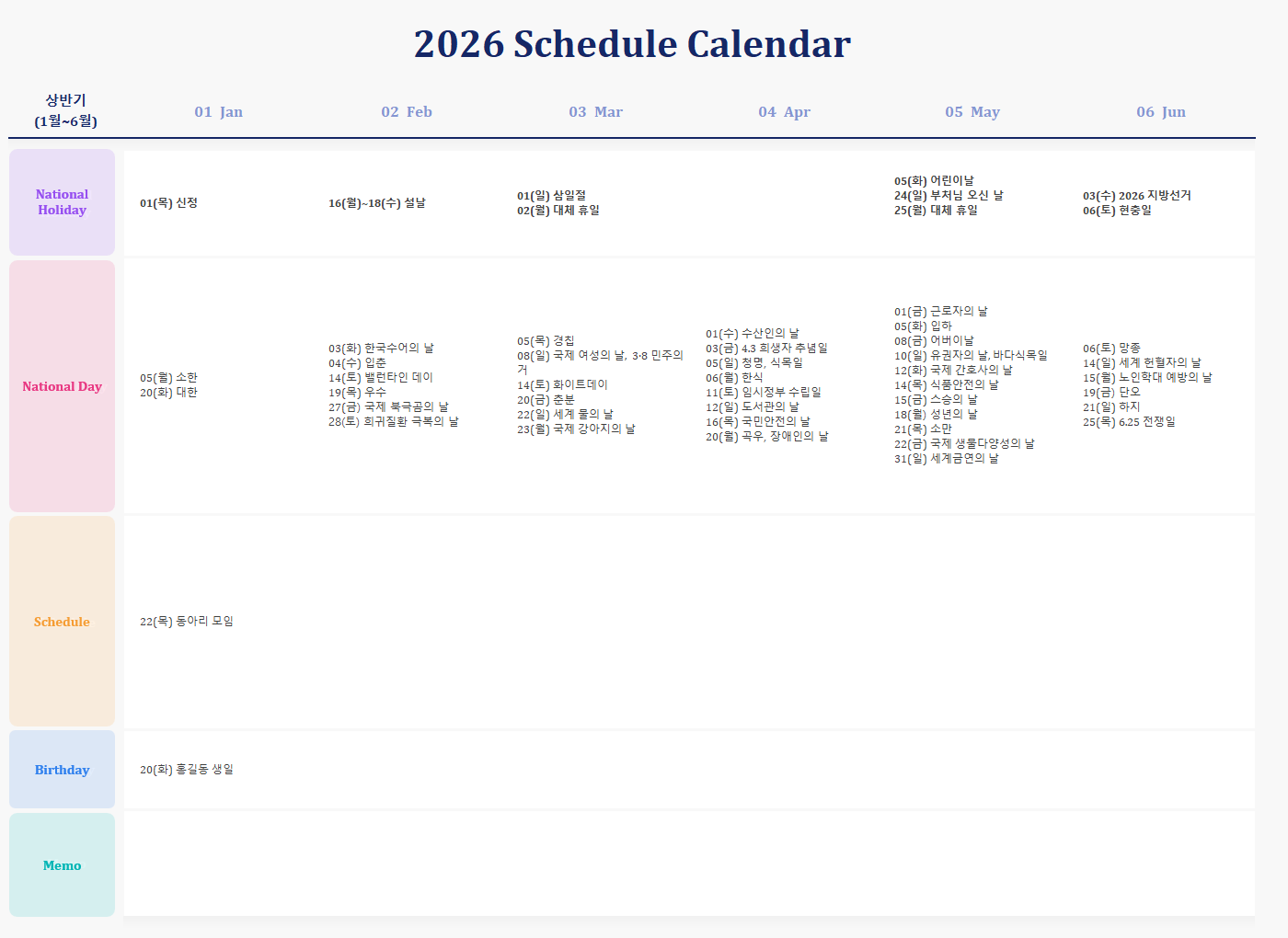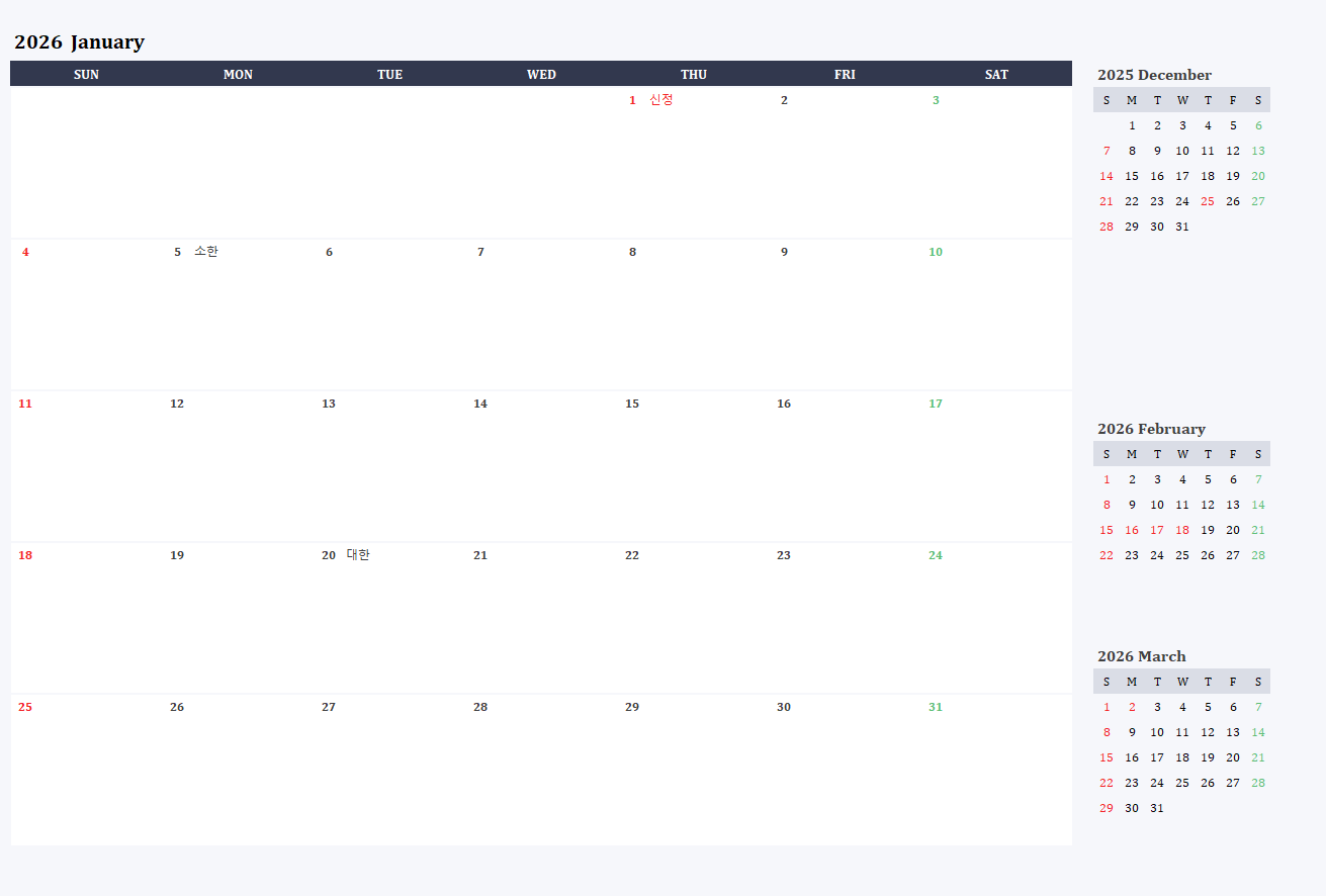 📝 2026년 달력(월간 세부일정)