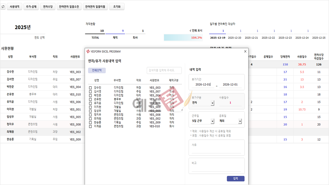 💡 예스폼 연차관리 엑셀 프로그램 활용 꿀팁