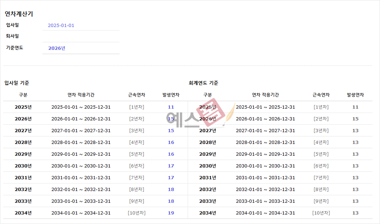 2️⃣ 연차계산기 (★★★ 2026 신규)