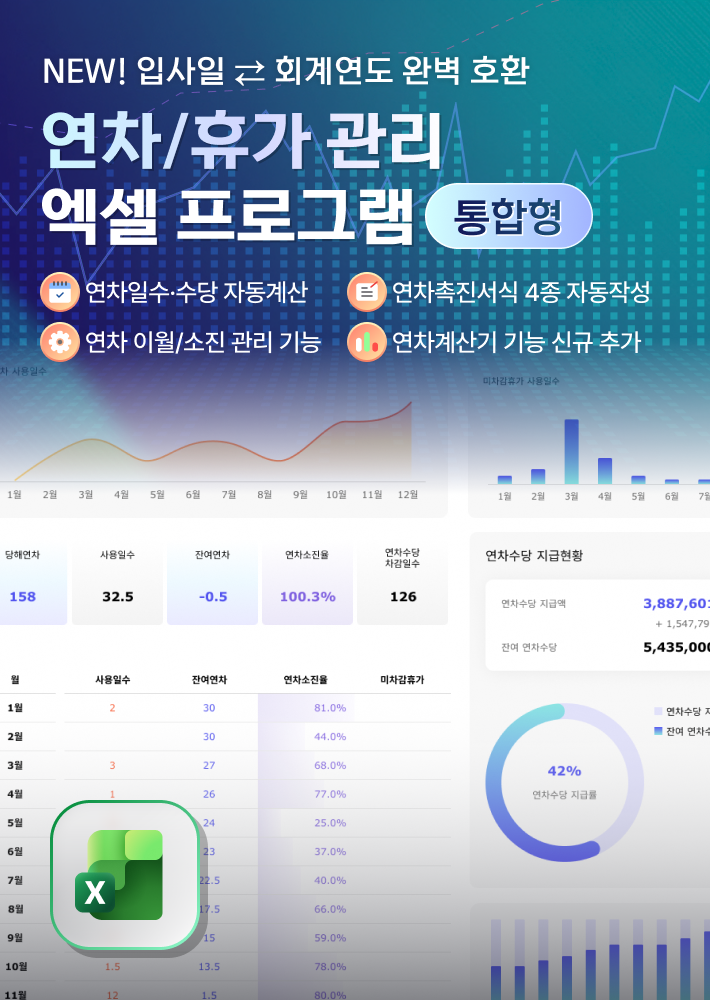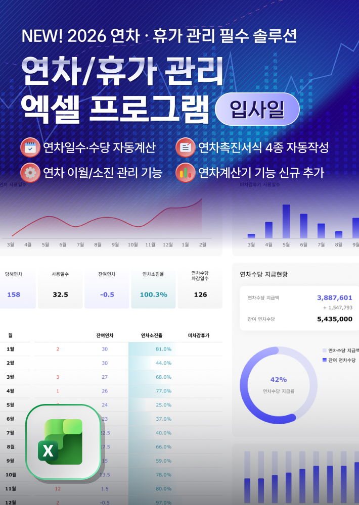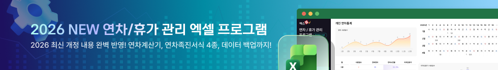 [2026년] 연차/휴가관리 엑셀 프로그램 – 통합형 기준, 연차계산기·연차촉진제도 적용 실제 기업에서 사용하는 구조와 보고 형식을 반영하여 누구나 빠르고 정확하게 결과를 확인할 수 있습니