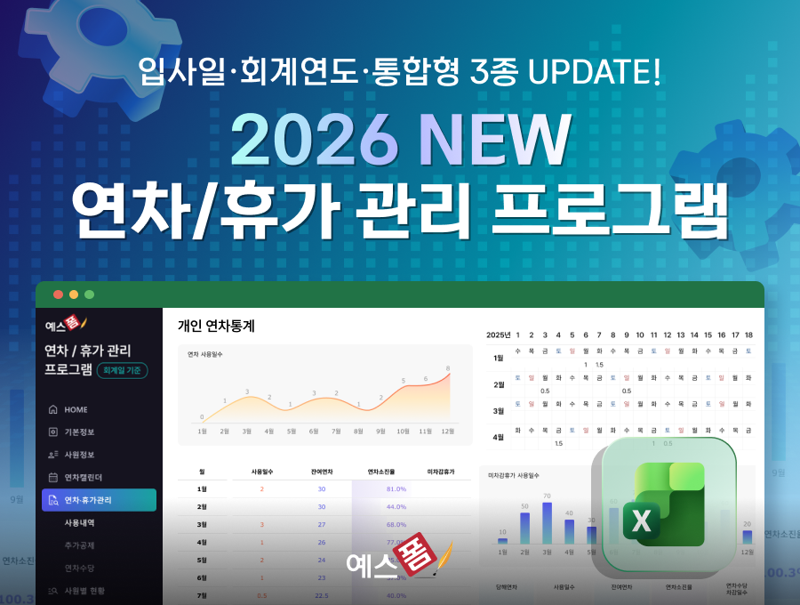 오늘은 2026년 최신 개정 기준을 완벽히 반영한 예스폼의 연차관리 엑셀 프로그램을 소개해 드립니다. 연차촉진서식 4종 자동 생성부터 연차계산기, 데이터 백업까지 인사담당자가 필요한 모든 기능을 담았습니다. 복잡한 연차관리, 이제는 한 번에 해결하세요!