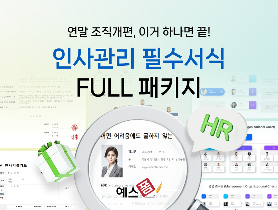지금 바로 예스폼에 방문하셔서 인사관리 풀패키지를 다운로드하고, 효율적이고 전문적인 인사관리 시스템을 구축해보시길 바랍니다! 💼✨