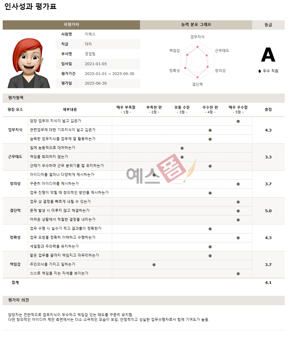 4️⃣ 인사평가표 - 공정한 성과 관리의 핵심
