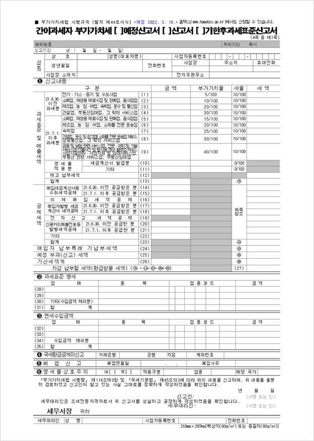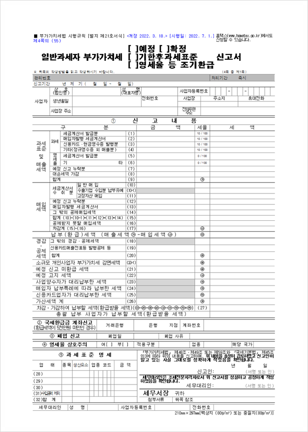 부가가치세 신고서 양식