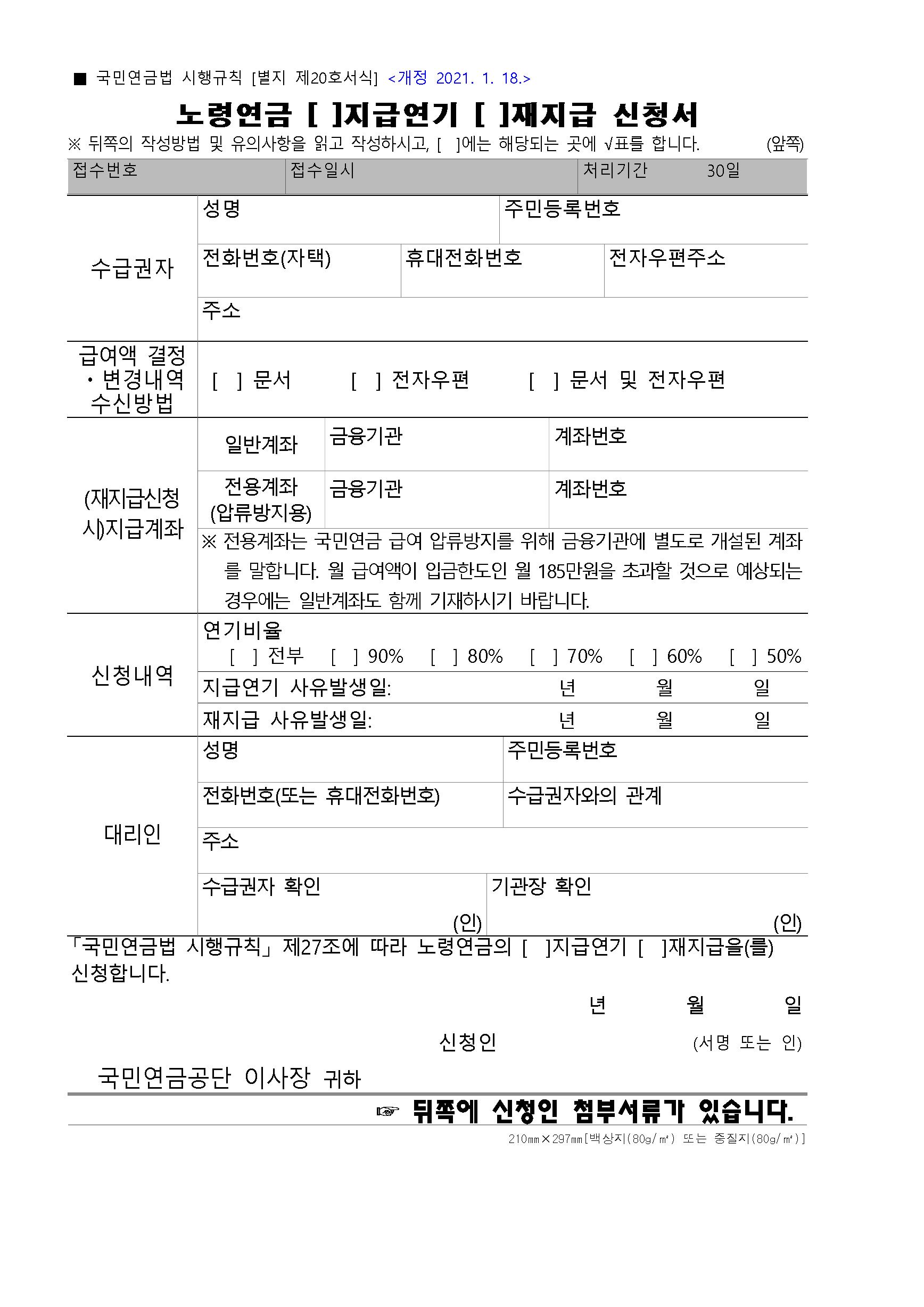 | 2022년 기초연금 사업 안내 | 노령연금 지급 청구서 | 노령연금 지급연기, 재지급 신청서 |