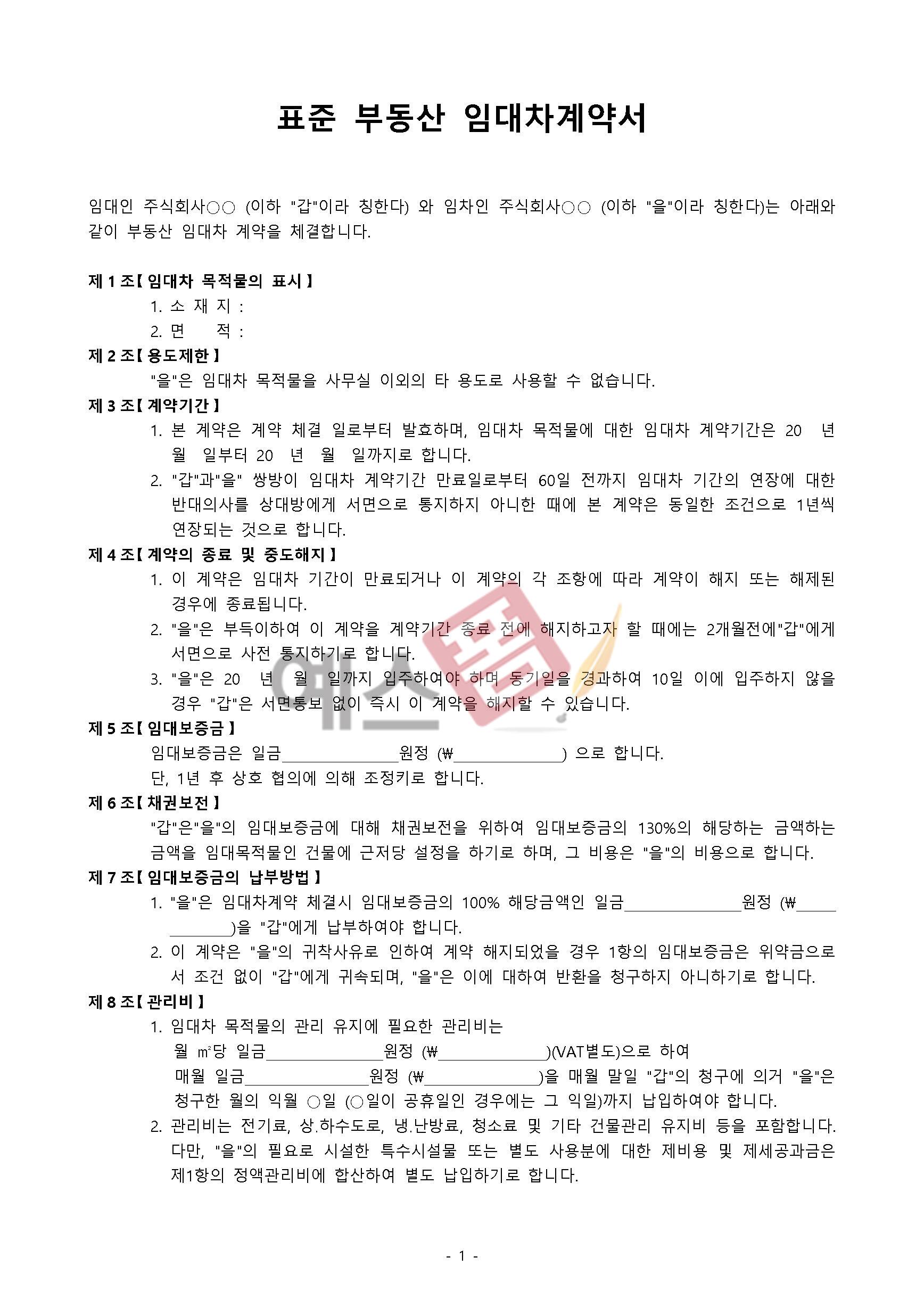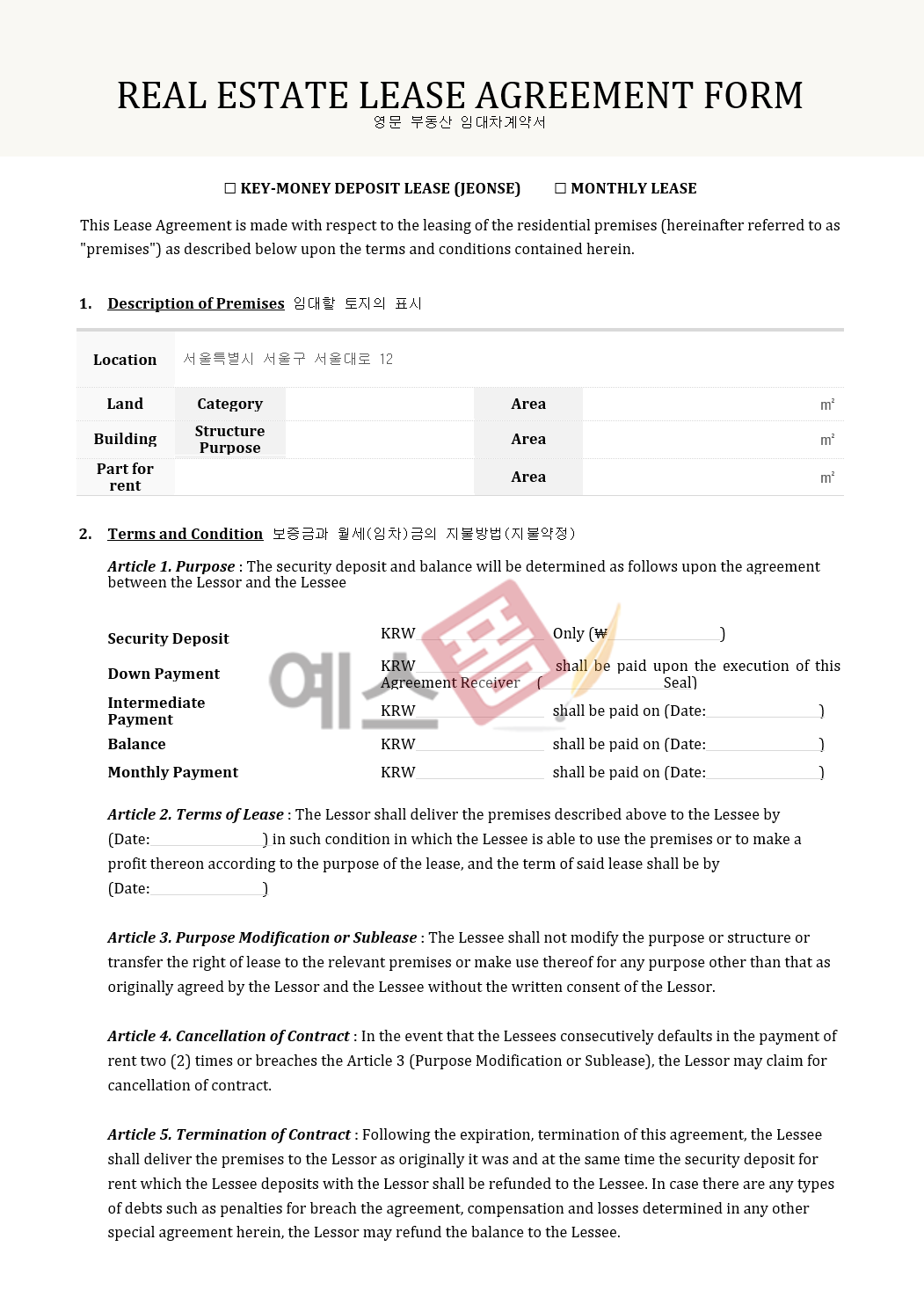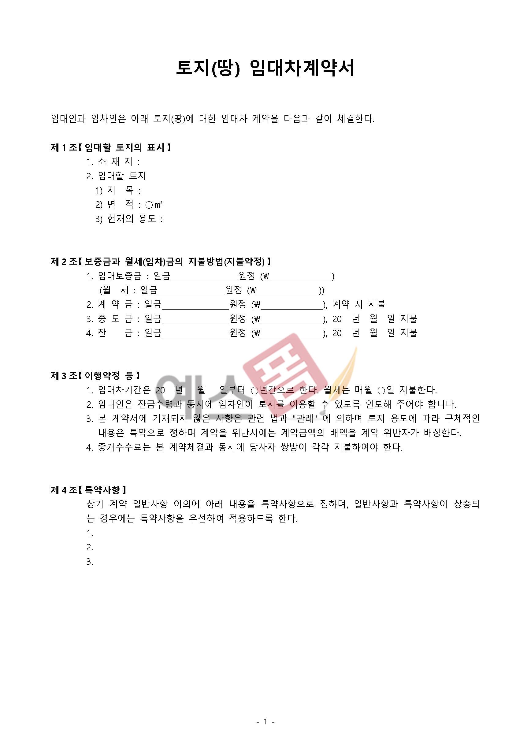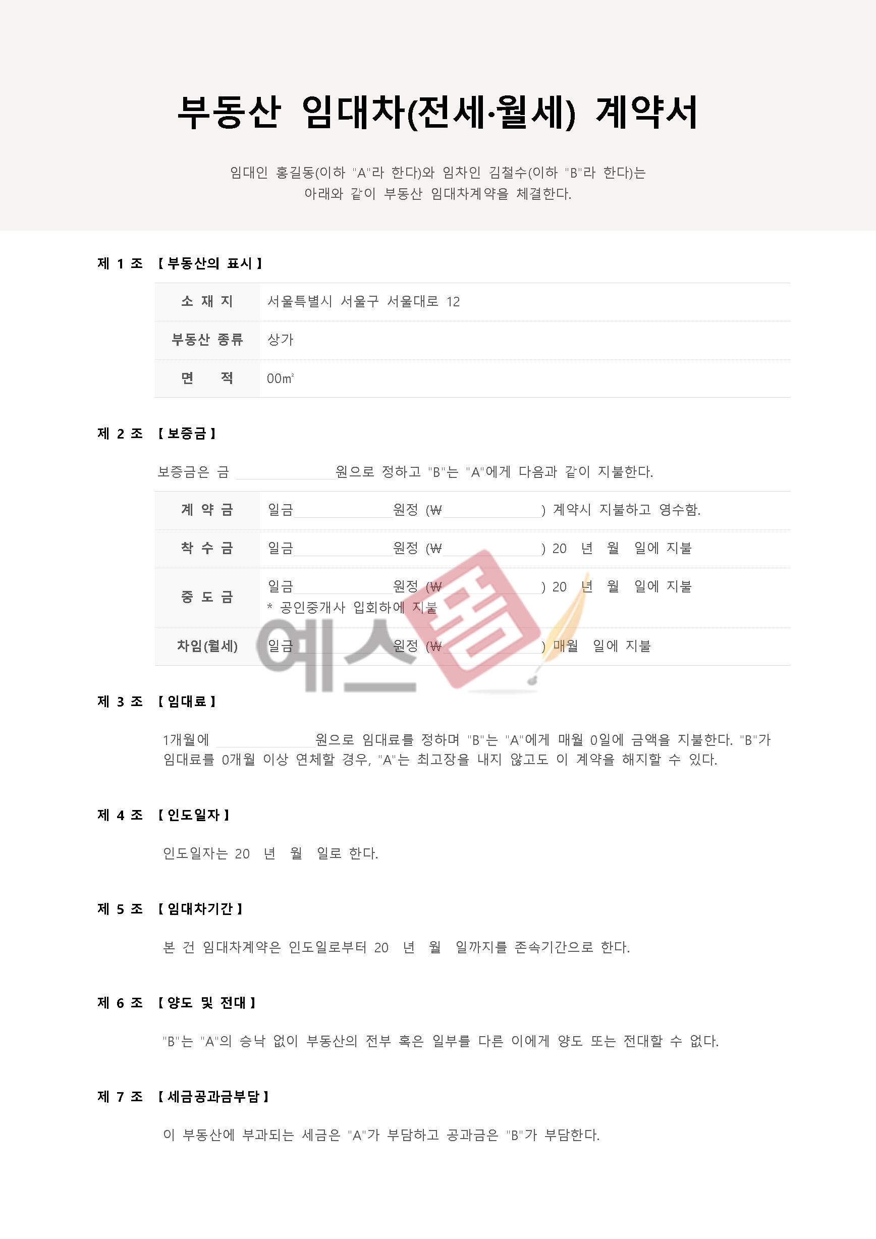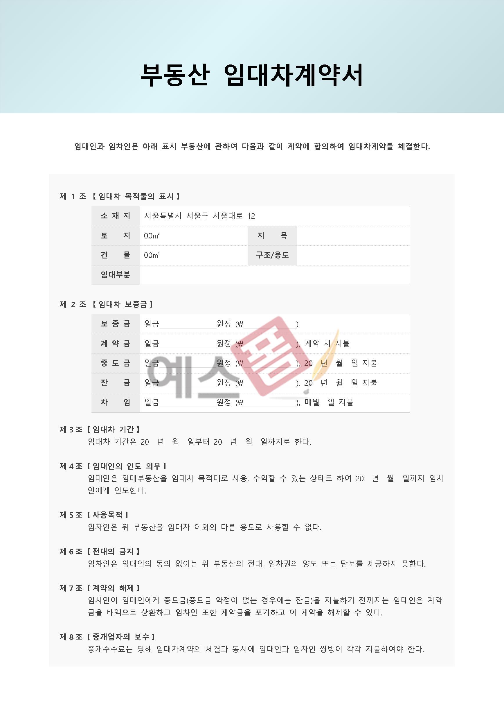예스폼 부동산 임대차(전세월세) 계약서