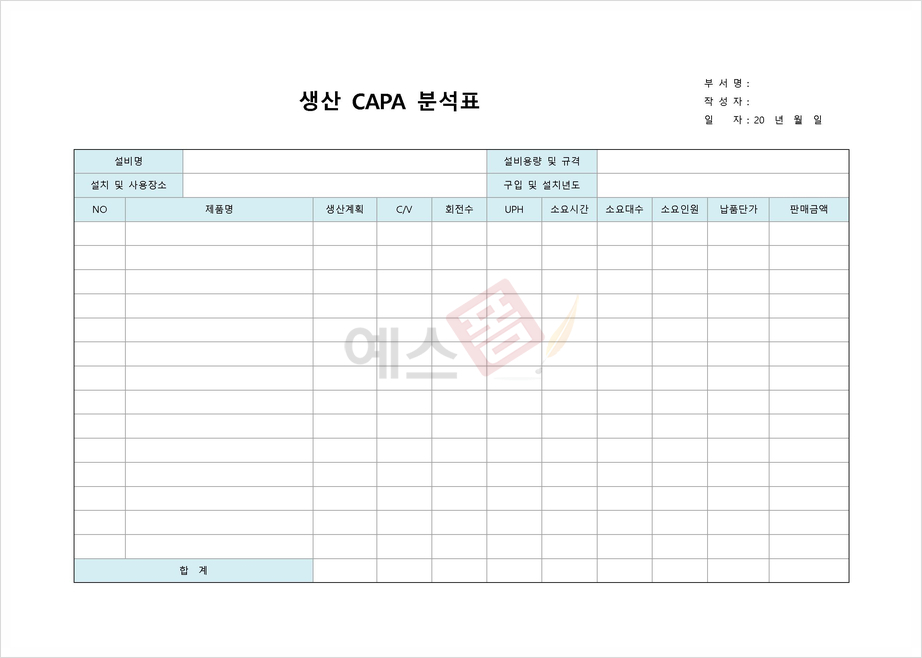 생산능력(CAPA) 분석표 양식
