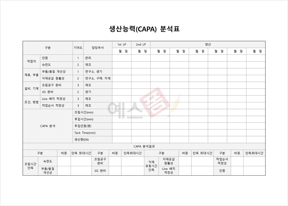 생산능력(CAPA) 분석표 양식