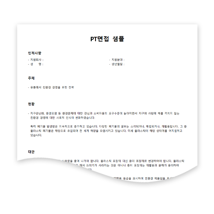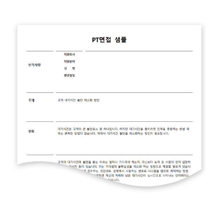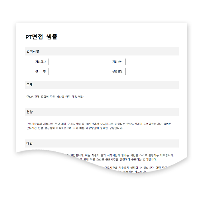 프리미엄 자소서 서식 > PT면접 - 예스폼 이력서·자기소개서