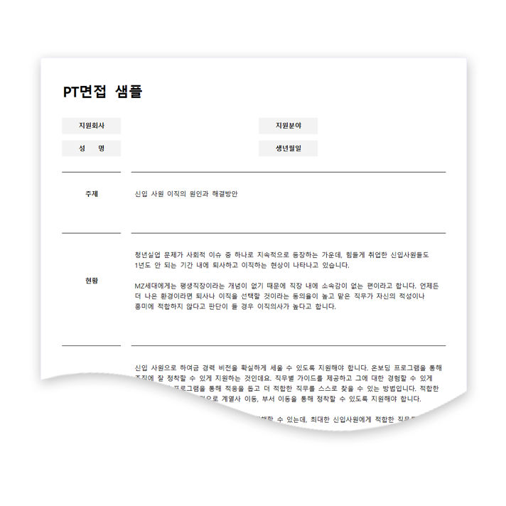 오늘 소개해드리는 내용과 PT면접 샘플을 꼭 참고하셔서 취뽀하시기 바랍니다!