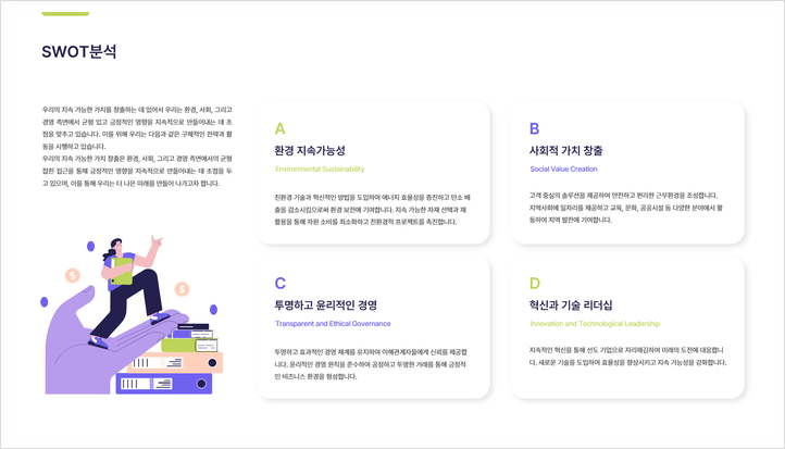 - 경쟁사 대비 우위에 있는 내부적 요소 (독점 기술, 브랜드 인지도, 우수한 인력 등)