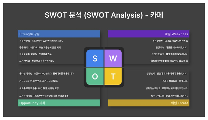 ▼▼ 카페 SWOT 분석 다이어그램 바로 가기 ▼▼