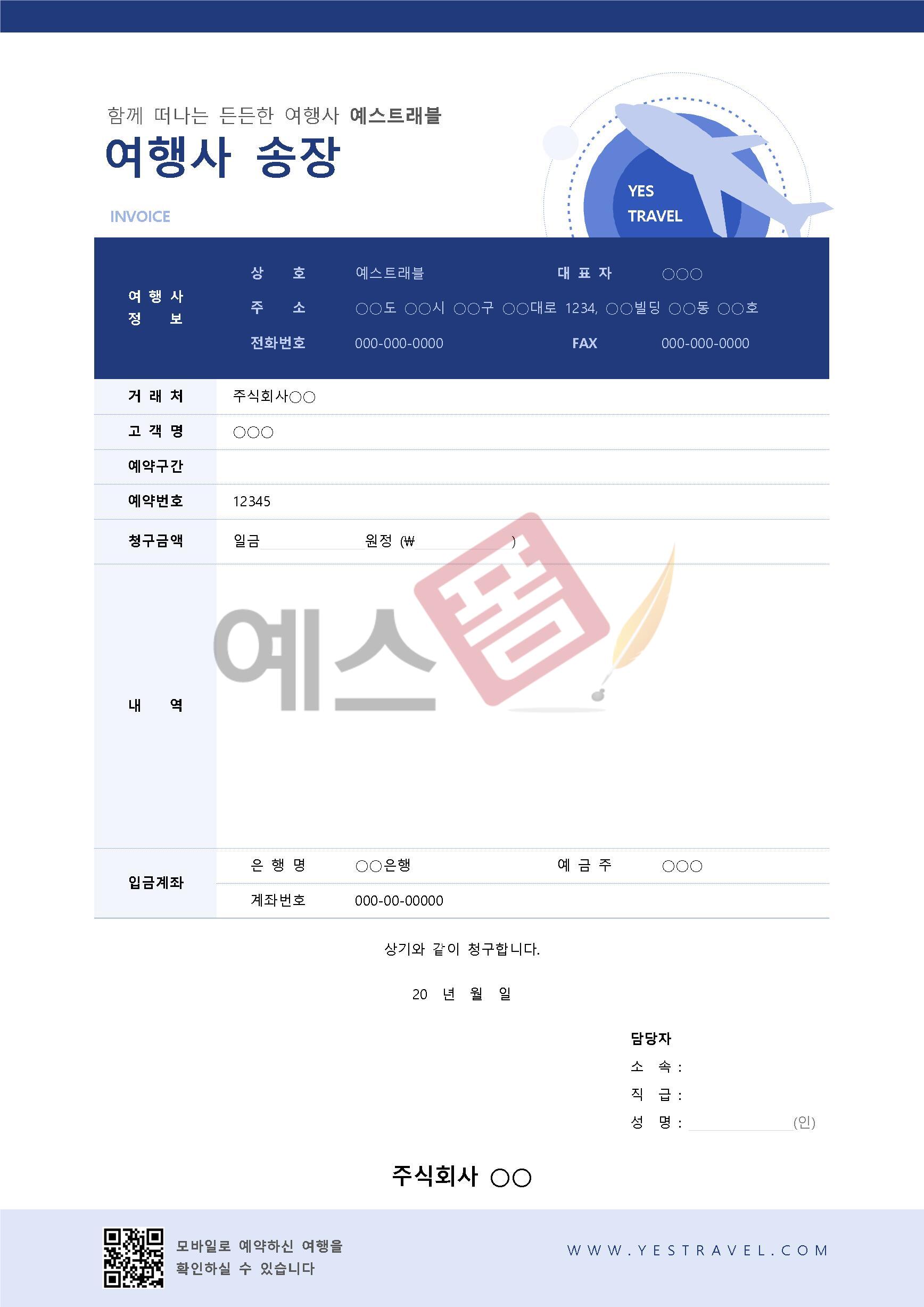 여행사 송장 영문 송장 (Invoice 06)
