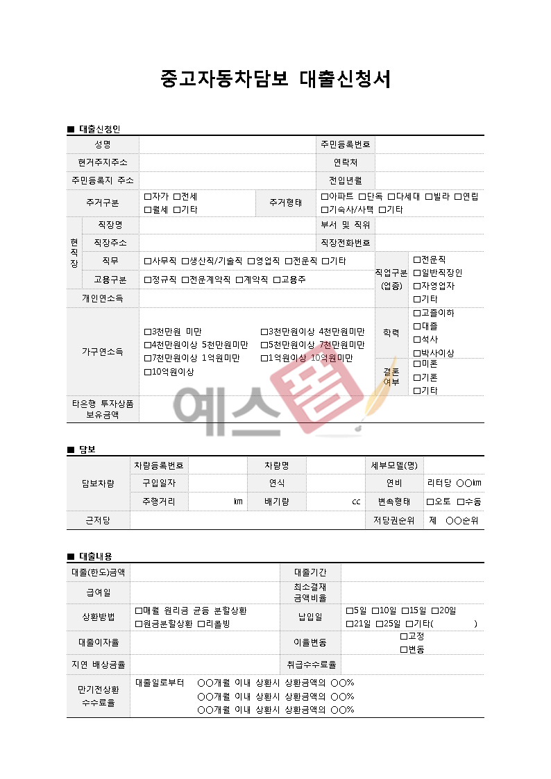 자동차 매매계약서(잔존할부금이 있을 경우) | 중고자동차 담보대출신청서 |
