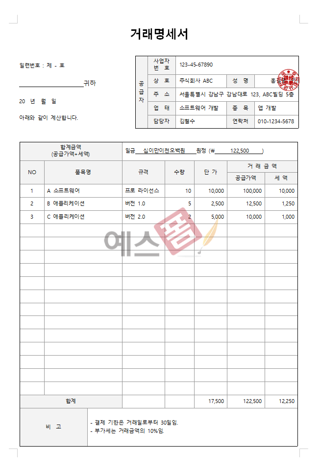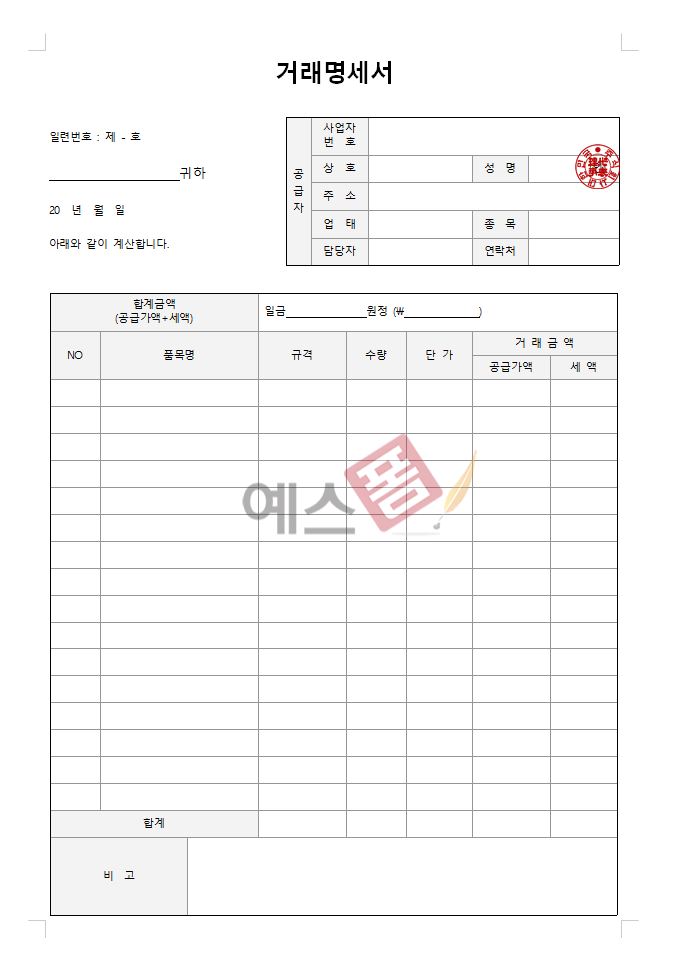 오늘은 거래의 투명성을 높이고 체계적인 사업 관리를 가능하게 해주는 예스폼의 거래명세서 양식과 그 활용 방법을 소개해드렸습니다. 정확한 거래 기록은 단순한 서류 작업이 아닌, 비즈니스 신뢰도를 높이고 안정적인 경영을 위한 필수 요소입니다.