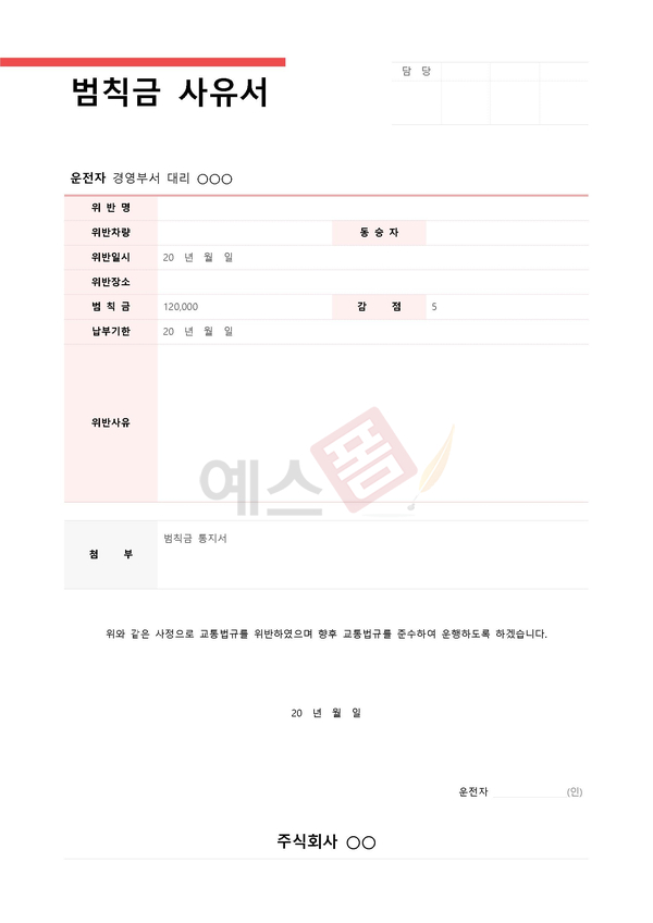| 사유서 | 결근사유서 | 범칙금 사유서 |