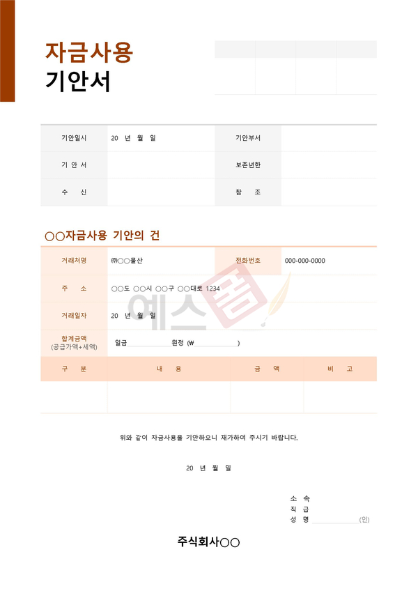 기업 경영활동에 필요한 자금 조달 계획과 운영방안을 세우기 위해 필요한 서식입니다.