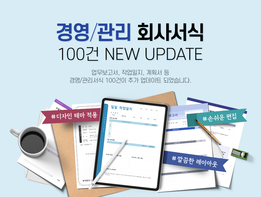경영/관리 회사서식 100건 업데이트 (업무보고서, 작업일지, 계획서 등)