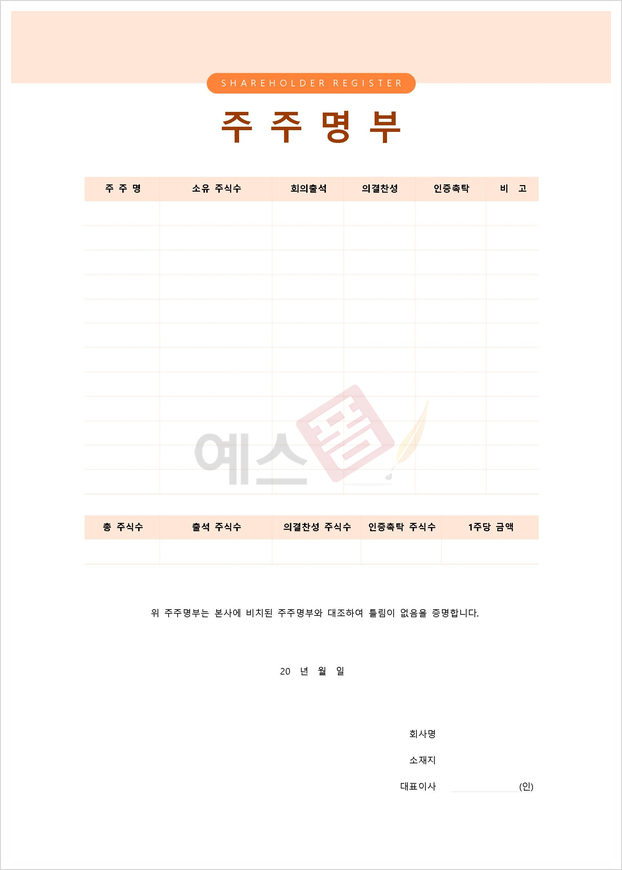| 주주명부 (1주당 금액) | 주주명부 (의견찬반명시) | 주주총회 의사록 |