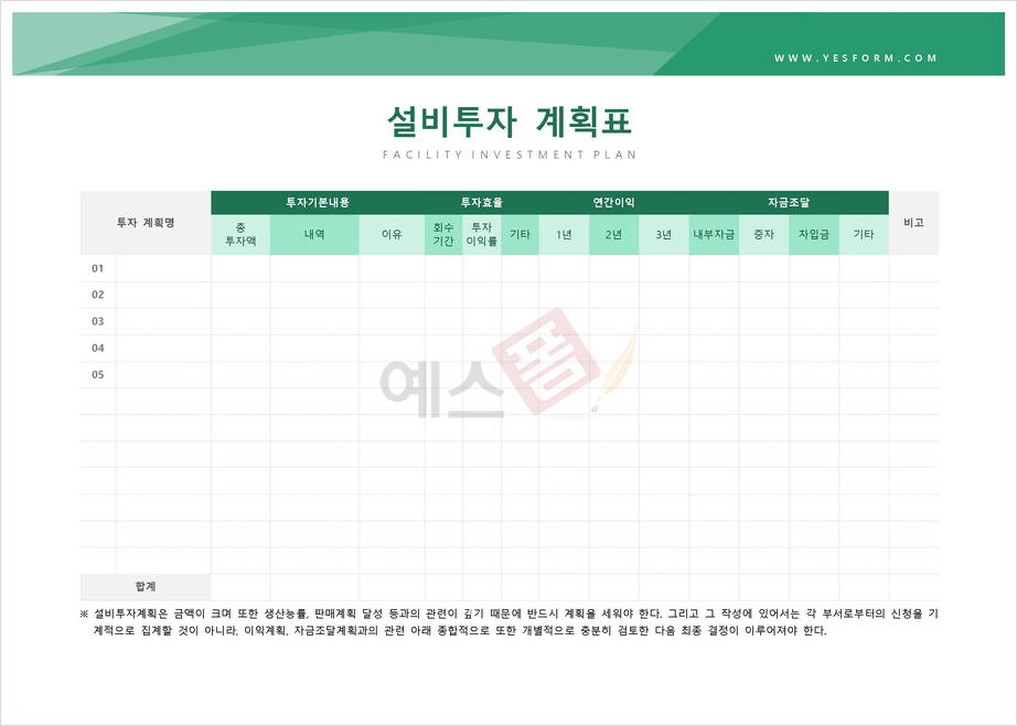 | 상품개발 계획서 | 설비투자 계획표 | 신년도 개인별 업무추진계획서 |