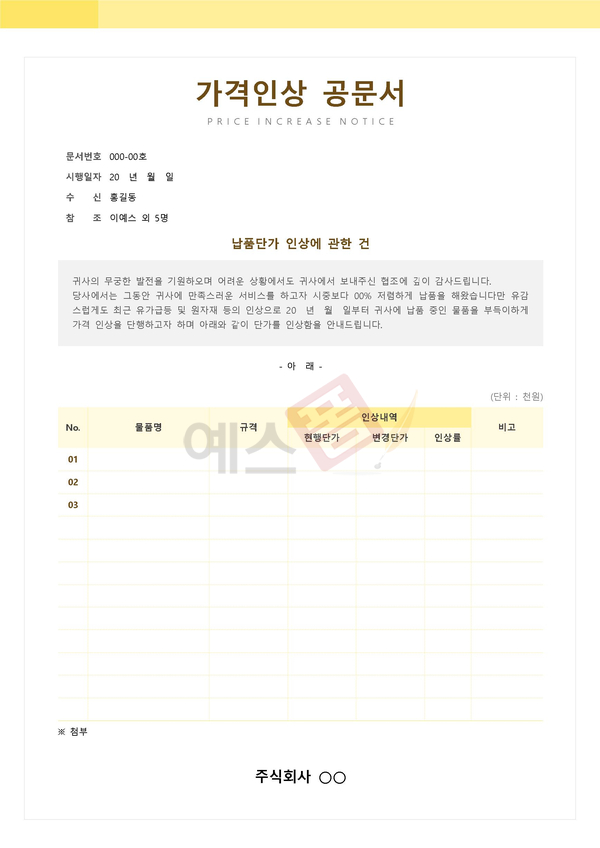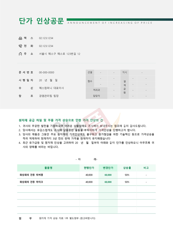 단가 인상공문 | 가격인상 공문서 |
