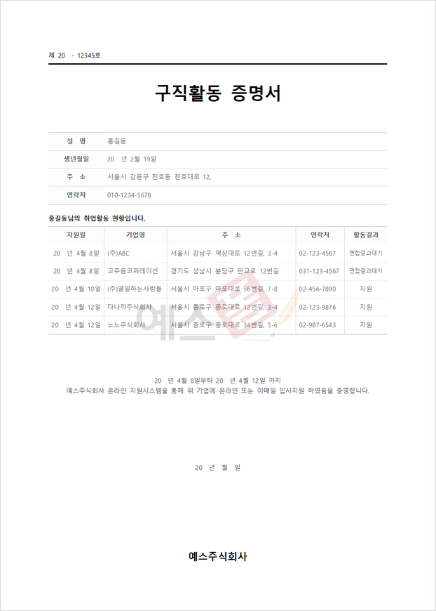📌 예스폼 구직활동 확인서