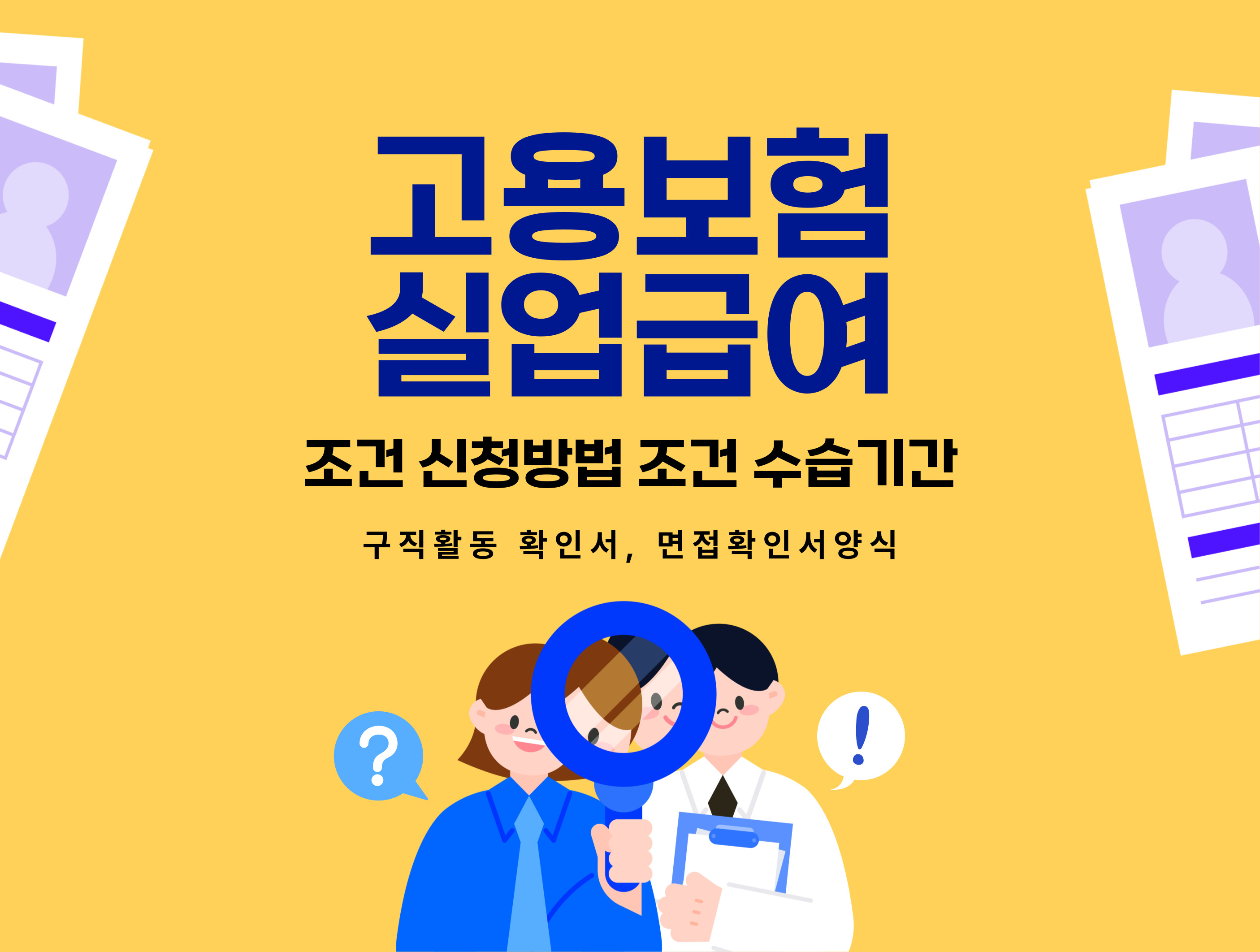 오늘은 예스폼에서 고용보험 실업급여 조건과 신청방법, 수습기간, 신청절차, 구직활동 확인서 양식과 면접확인서 양식 추천에 대해서 알아보도록 하겠습니다.
