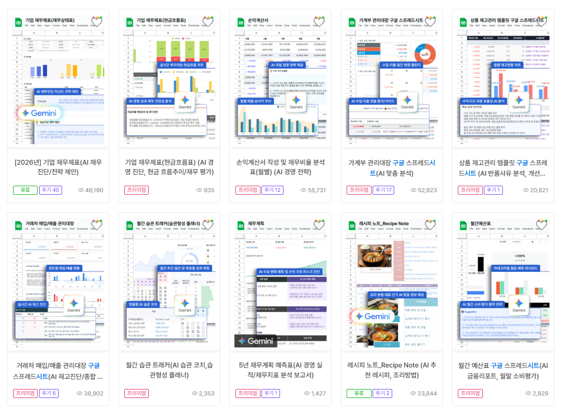 구글스프레드시트 사용법 및 다운로드 가이드 : AI 구글 스프레드시트 양식 추천