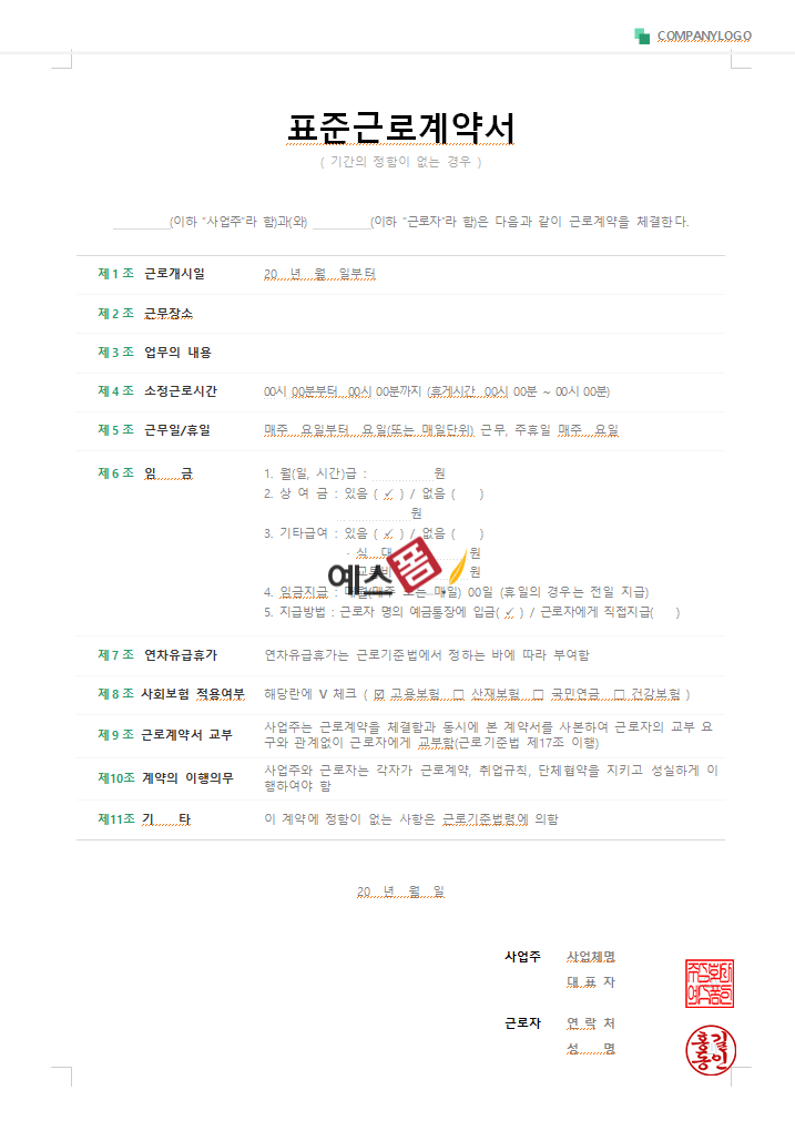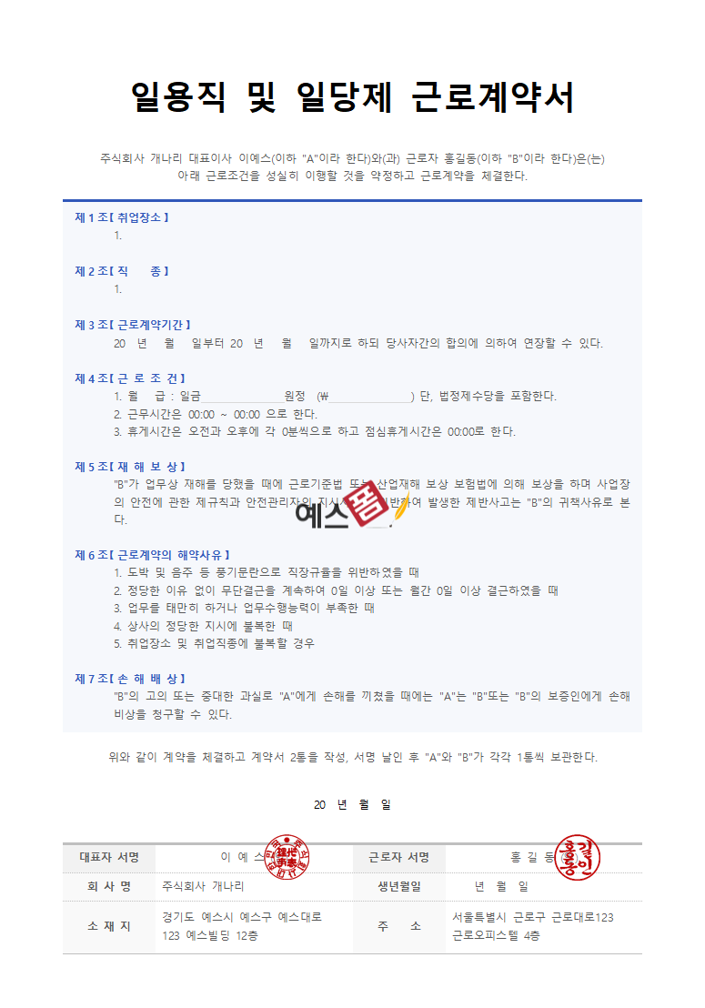 👇🏻 [예스폼 근로계약서 양식 바로가기] 👇🏻