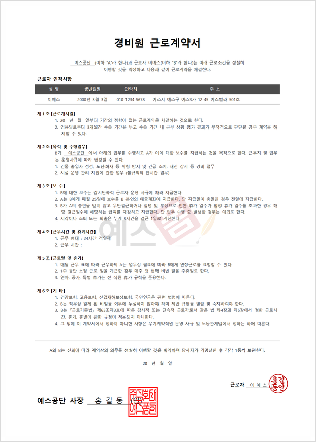 근로계약서 작성 방법 알아보기 + 연봉제 촉탁직 경비원 근로계약서 양식 및 예시 추천