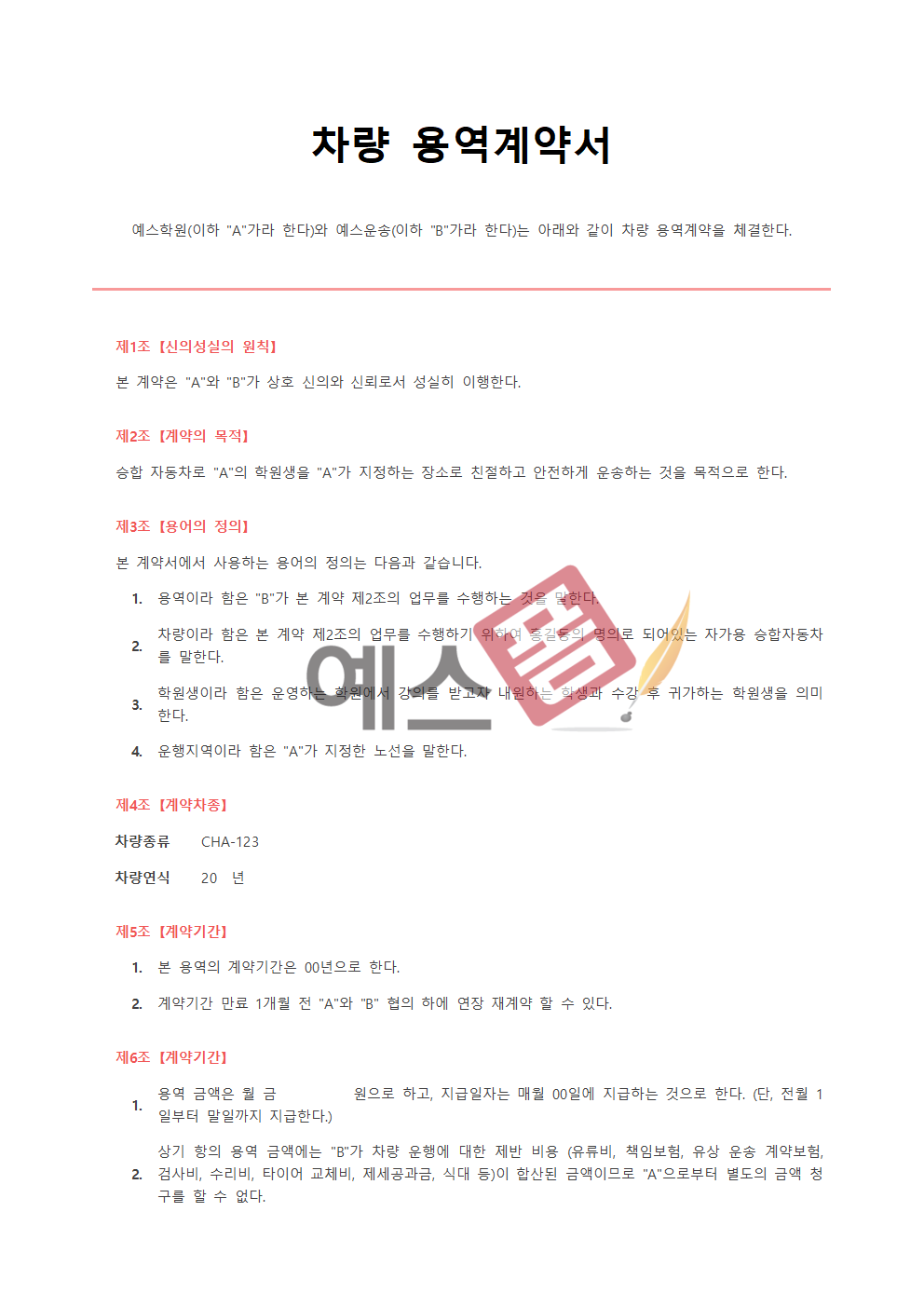 프리랜서 용역 계약서 | 운송 용역계약서 |