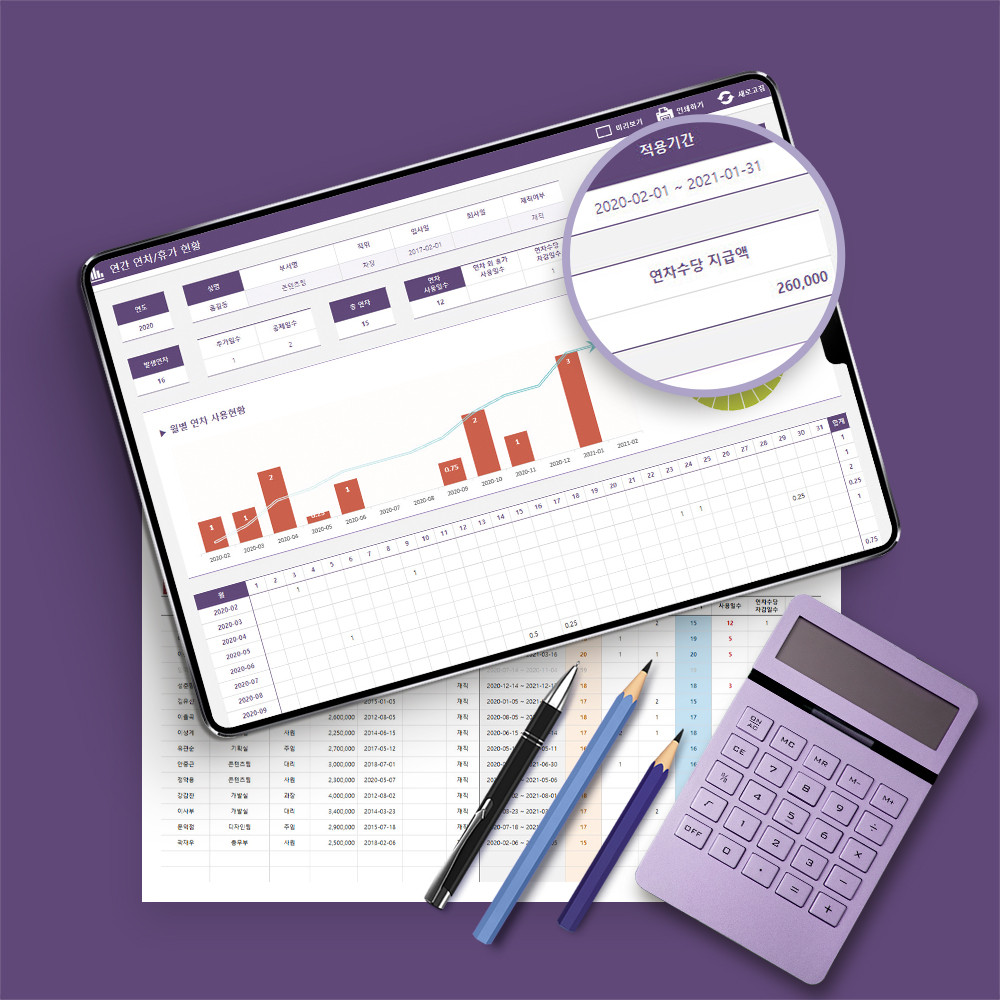 사내에서 기존에 사용하고 있는 연차관리 서식보다 연차휴가 관리 프로그램이 복잡하여 사용이 어려울 것 같으신 분들을 위해 준비한 연차 휴가 관리 프로그램 리뷰 영상입니다. 입사일 기준, 회계일 기준 프로그램의 기능과 구성에 대해 알아보고 실무에서 어떻게 사용하면 좋은지 차근차근 설명해드립니다.