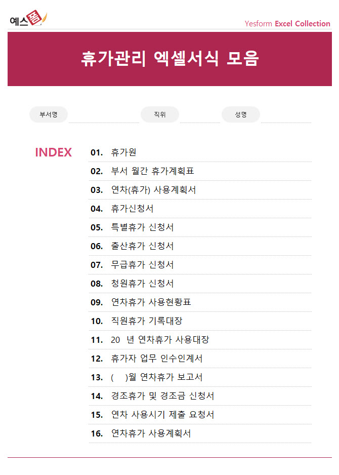 연차휴가 관리 엑셀 프로그램 & 관련 서식