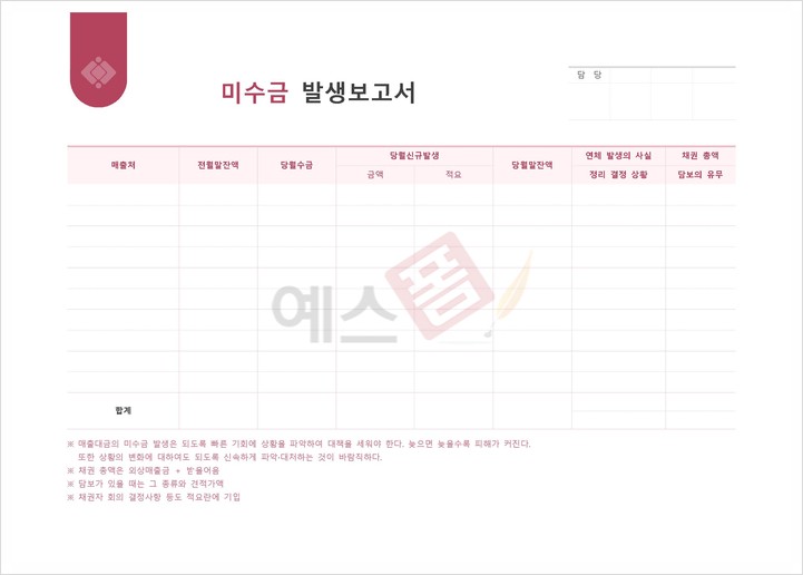 | 미수금 발생보고서 | 미수연체금 발생 보고서 |