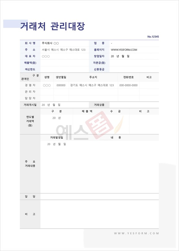 | 거래처 관리대장 | 거래처대장 | 업체평가서 |