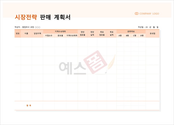 | 시장전략 판매 계획서 | 상품판매 계획표 |