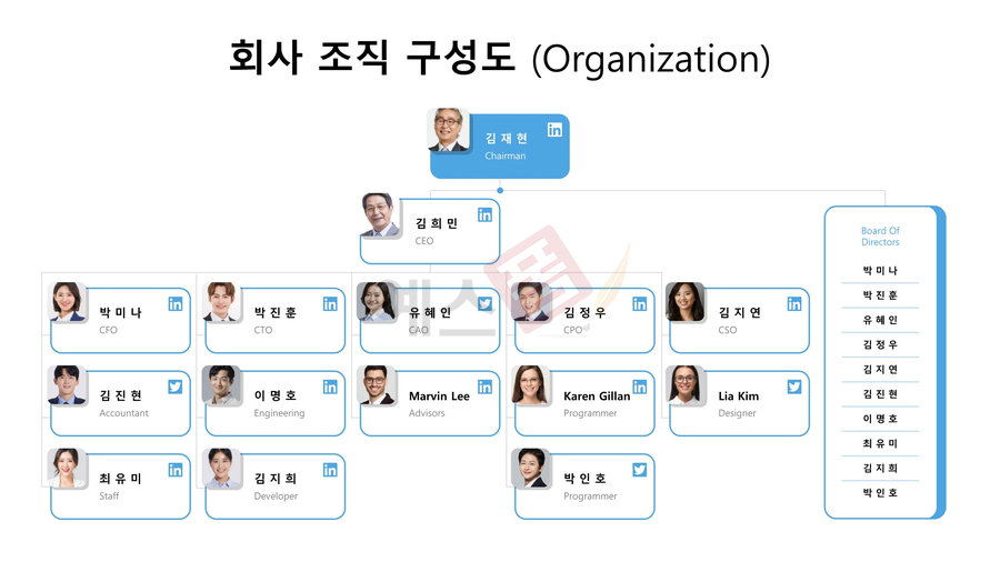 | 기업 조직도 Company Hierarchy | 회사 조직도 Organization Chart |